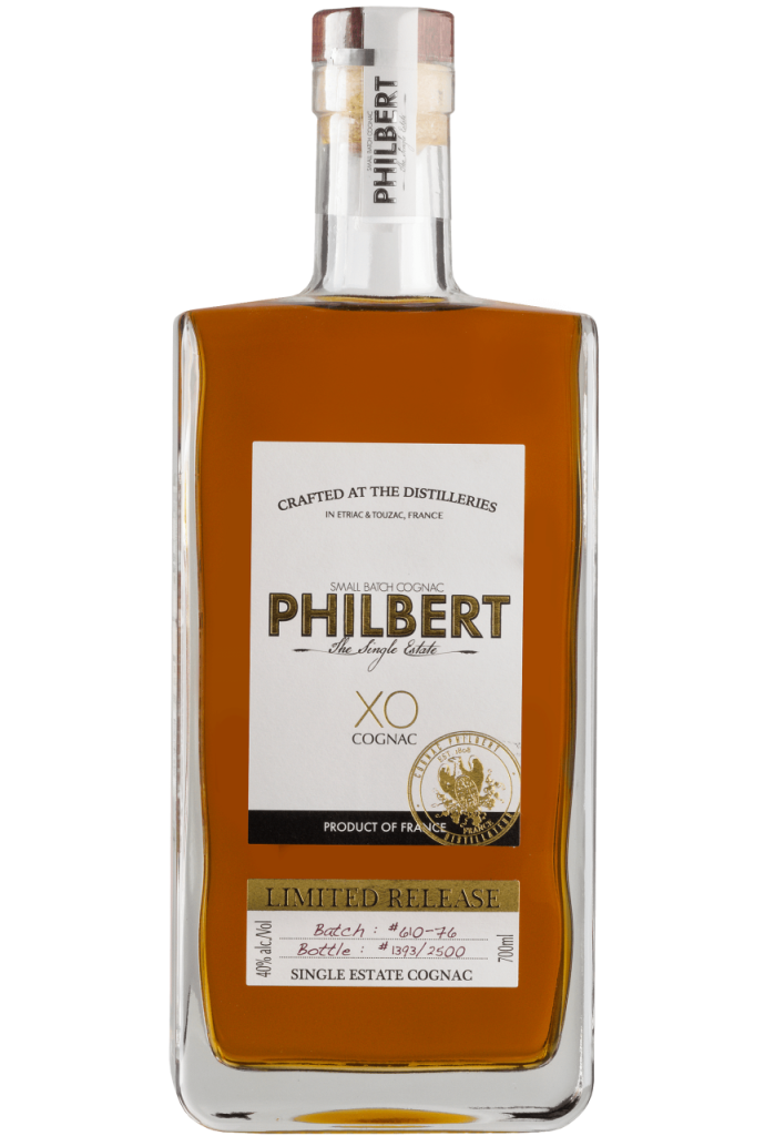 Cognac Philbert, Single Estate XO — коньяк, изготовленный по классической технологии из лучшего винограда из провинции Коньяк. Виноград выращивается на собственных виноградниках компании, расположенных в двух знаменитых зонах провинции: Пти Шампань и Гранд Шампань. Коньяк выдерживается в новых и ранее использованных бочках из французского дуба в течение пятнадцати лет. Каждая бутылка коньяка имеет порядковый номер, номер партии бочек, роспись боттлера и менеджера выдержки, и точное содержание алкоголя.