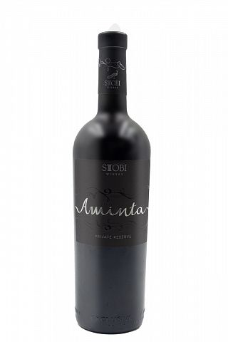 Особенность виноградники Стоби находятся в самом знаковом регионе страны – Тиквеш, тот же меридиан, на котором находятся регион Бордо, и долина Напа (Калифорния). Вино Аминта сделано из местного сорта Вранец и хорошо известных европейских сортов Мерло и Каберне Совиньон. Ферментация проходит в металлических чанах. Выдержка – 18 месяцев в бочке. В букете аромат небольших красных ягод. Обволакивающее, концентрированное вино с растительными нотами